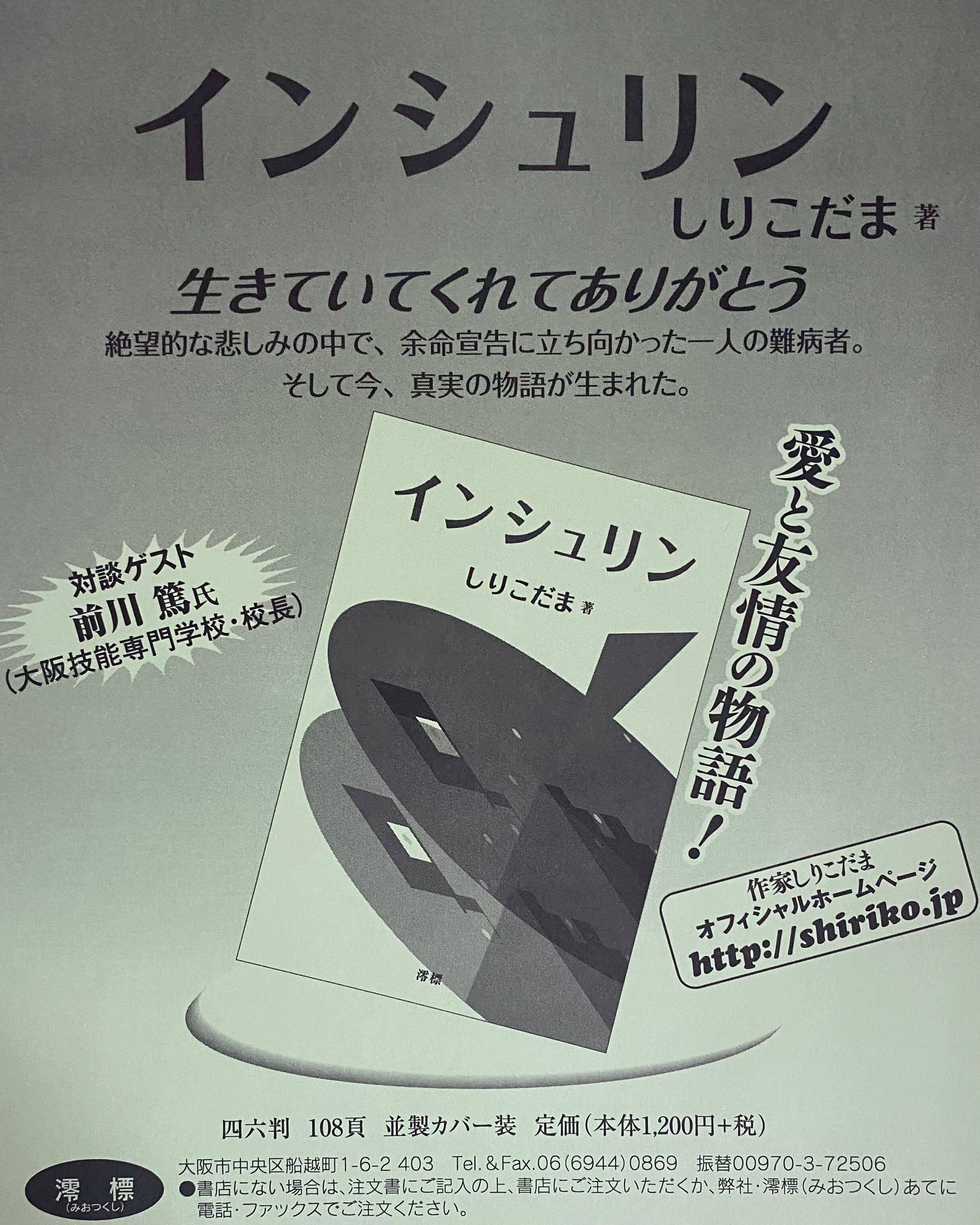 【直筆サイン入り】書籍「インシュリン 〜ぼくの友達の物語〜」